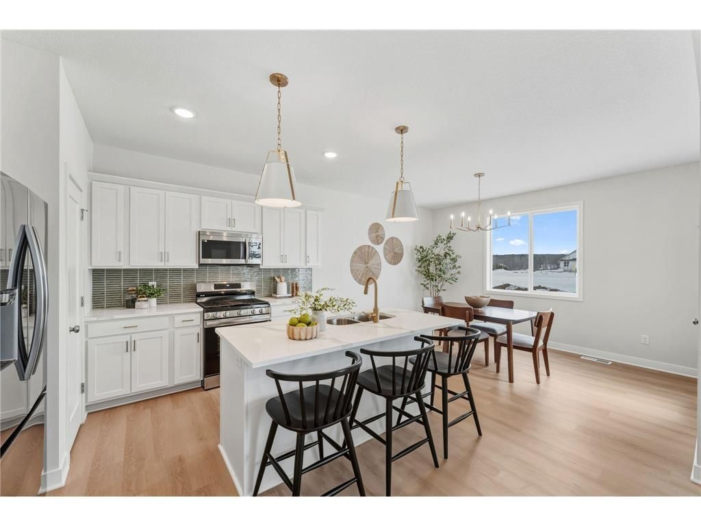 Welcome to the Kenny by Creative Homes, set on a scenic pond homesite in the Gloverdale community of New Richmond. This 5 bedroom 4 bathroom farmhouse inspired home blends thoughtful design with everyday functionality. Enjoy an oversized kitchen island with upgraded appliances, added windows for natural light, open railing details, and a cozy fireplace that anchors the main living space. Upstairs offers flexible rooms for work, guests, or everyday living. Built with Creative Homes? commitment to Customer Experience, Personalization, and a proven Quality Process. Estimated completion March 2026.