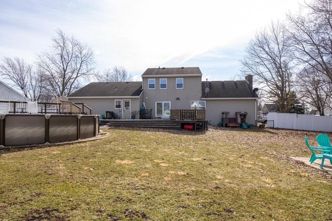 4 Bedrooms, 2.5 Baths, 2.5-Car Attached Garage, 2,587 Finished Sq Ft, .39 Acre Lot Colonial charm, generous living space. Spacious, flowing floor plan designed for both everyday comfort and effortless entertainment. Soaring cathedral ceilings with skylights that flood the space with natural light, a stunning brick- fireplace. Granite countertops, tile and hardwood floors, with plenty of room to gather, cook, and create memories. Large bedrooms and a finished lower level that expands your living area even further. Private yard is complete with a pool custom deck and covered front porch. Priced with updates needed in mind. Recent appraisal and inspection report included. Seller to give $10,000 toward closing cost/prepaids or flooring and a Home Warranty.