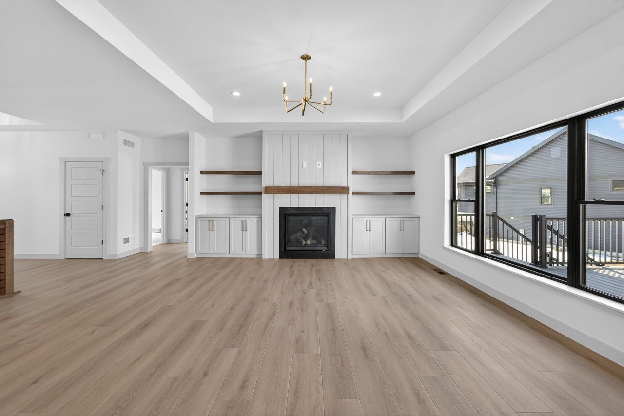 Cornerstone Building & Design brings you their popular modern split bedroom ranch with stunning craftsmanship & an open concept floor plan. Main level features a chef's kitchen w/ custom Amish built cabinetry, solid surface countertops, and an oversized walk-in pantry. Half bath and split laundry/mudroom with custom built-ins. Fully insulated 3-season porch w/ walkout deck overlooking yard. The primary suite features a lit tray ceiling with tiled walk-in shower, double vanity, and a large walk-in closet. Finished exposed lower level with rec room, 4th bedroom, and full bathroom. Large storage room and flex room. Features include a walkout 3 season porch, separate mudroom/laundry rooms, and basement access from the 3 car garage.