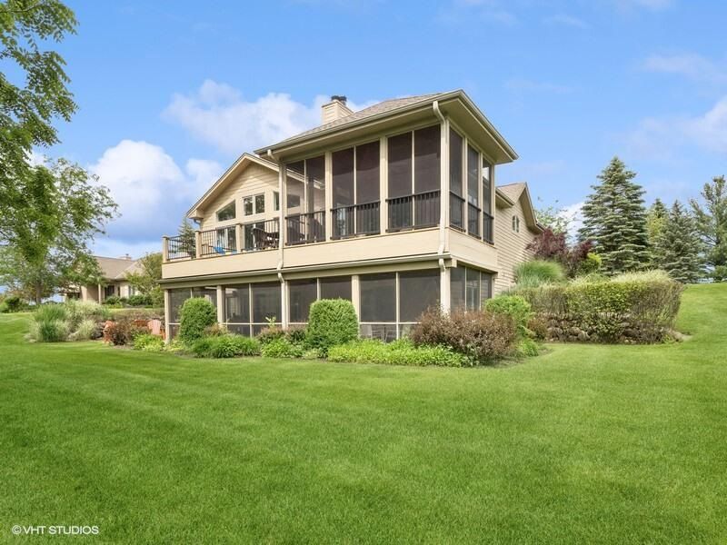 Custom built rare find in gated Geneva National as the only single family home in Golfview Terrace. First time on the market, tucked at the end of a cul-de-sac with stunning views, this beautiful open concept ranch with walkout basement, a dream kitchen and 2 cozy fireplaces is perfect for every day comfort and entertaining. Plenty of outdoor enjoyment on your deck, patio or screened porches. Spacious bedrooms, hardwood floors, vaulted ceilings and beautiful windows capture views of the Trevino Golf Course 12th and 13th holes. Lower walkout level includes a kitchen, 2 bedrooms, fireplace and family room. Short walk to pool, tennis, pickleball, fitness, restaurants. It's perfect blend of elegance, recreation, and serene lake-country living with breathtaking sunsets!