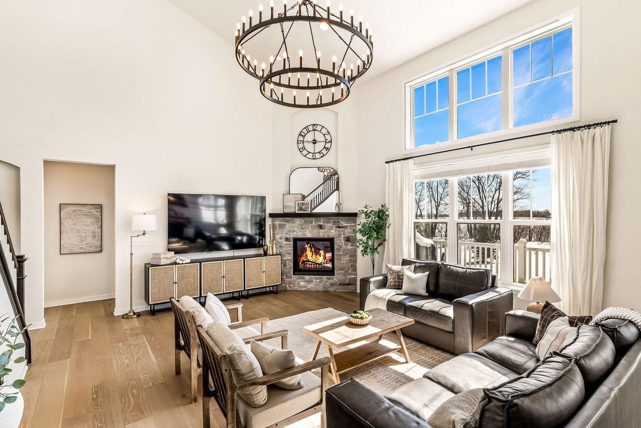 Open - concept living shines in this beautifully designed Highlander Estates home, where a vaulted great room with gas fireplace creates warm and inviting focal point. Sunlight pours in throughout, enhancing home's bright and airy feel. Main level offer functionality and flexibility, feature formal dining, office for work from home. Spacious primary suite provided comfort and convenience. Upstairs, you'll find 3 generous sized bdrms and well appointed hall bath for family & guests. Finished lower level is truly exceptional with additional bdrm, office, kitchenette, playroom. Step outside on composite deck and professionally landscaped yard. A perfect blend of space light and thoughtful design - this home is ready to impress! New flooring on main, lighting, lower level LVP!!!